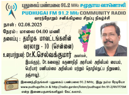 தஞ்சாவூர், பெரியார் மணியம்மை அறிவியல் மற்றும் தொழில்நுட்ப நிறுவனம், டாக்டர் கலைஞர் கருணாநிதி அரசியல் அறிவியல் மையம், இயக்குநர் Dr.K.செல்வக்குமார் அவர்கள் “தமிழக மாவட்டங்களின் வரலாறு” (சென்னை) என்ற தலைப்பில் வழங்கிய உரை.
