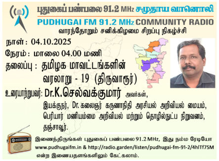 தஞ்சாவூர், பெரியார் மணியம்மை அறிவியல் மற்றும் தொழில்நுட்ப நிறுவனம், டாக்டர் கலைஞர் கருணாநிதி அரசியல் அறிவியல் மையம், இயக்குநர் Dr.K.செல்வக்குமார் “தமிழக மாவட்டங்களின் வரலாறு”(திருவாரூர்) என்ற தலைப்பில் வழங்கிய உரை.