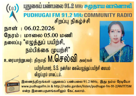 விழுப்புரம் மாவட்டம், S.S தன்சிகா கையெழுத்துப்பயிற்சி மையம், பயிற்சியாளர், திருமதி M.செல்வி அவர்கள். “எழுத்துப் பயிற்சி, நம்பிக்கை முயற்சி”என்ற தலைப்பில் வழங்கிய உரையாடல்.