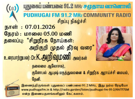 தேனி, குளோபல் ஆயுஷ் மருத்துவமனை & சிறுநீரக ஆராய்ச்சி மையம், தலைமை ஆலோசகர், Dr. K.அறிவுமணி அவர்கள். “சிறுநீரக நோய்கள்: அறிகுறி முதல் தீர்வு வரை” என்ற தலைப்பில் வழங்கிய உரையாடல்.