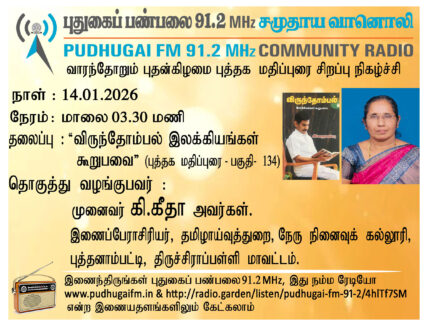 திருச்சிராப்பள்ளி மாவட்டம், புத்தனாம்பட்டி, நேரு நினைவுக் கல்லூரி, தமிழாய்வுத்துறை, இணைப்பேராசிரியர், முனைவர் கி. கீதா அவர்கள். “விருந்தோம்பல் இலக்கியங்கள் கூறுபவை” (புத்தக மதிப்புரை பகுதி 134) என்ற தலைப்பில் வழங்கிய உரை.