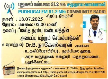 புதுக்கோட்டை, அரசு மருத்துவக் கல்லூரி மருத்துவமனை, நரம்பியல் துறை, உதவிப்பேராசிரியர், Dr.B.நாகேஸ்வரன் அவர்கள், “மனித நரம்பு மண்டலத்தின் அமைப்பு மற்றும் செயல்பாடுகள்” என்ற தலைப்பில் வழங்கிய உரையாடல்.