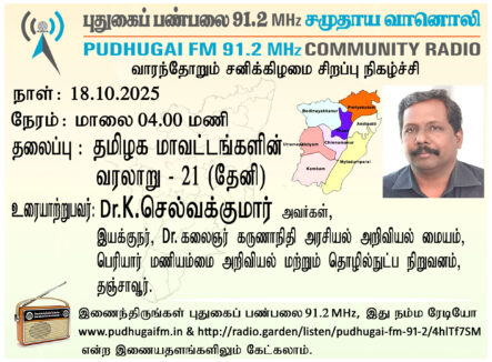 தஞ்சாவூர், பெரியார் மணியம்மை அறிவியல் மற்றும் தொழில்நுட்ப நிறுவனம், டாக்டர் கலைஞர் கருணாநிதி அரசியல் அறிவியல் மையம், இயக்குநர் Dr.K.செல்வக்குமார் அவர்கள் “தேனி”என்ற தலைப்பில் வழங்கிய உரை