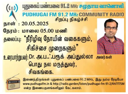 சிவகங்கை, பொதுநல மருத்துவர், Dr. அ. ப. ஃபரூக் அப்துல்லா அவர்கள். “நீரிழிவு நோயின் வகைகளும் சிகிச்சை முறைகளும்” என்ற தலைப்பில் வழங்கிய உரையாடல்.