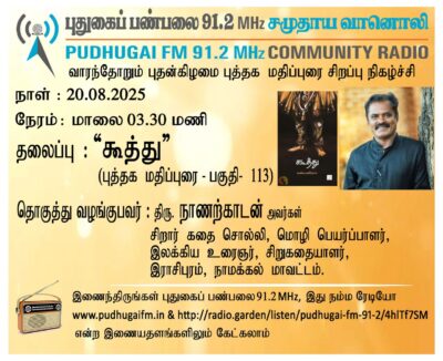 நாமக்கல் மாவட்டம், இராசிபுரம், இலக்கிய உரைஞர், சிறுகதையாளர், சிறார் கதைச் சொல்லி, மொழிபெயர்ப்பாளர், திரு. நாணற்காடன் அவர்கள் “கூத்து” (புத்தக மதிப்புரை – பகுதி – 113) குறித்து வழங்கிய உரை.