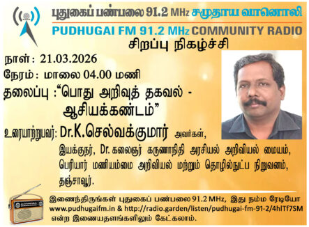தஞ்சாவூர், பெரியார் மணியம்மை அறிவியல் மற்றும் தொழில்நுட்ப நிறுவனம், டாக்டர் கலைஞர் கருணாநிதி அரசியல் அறிவியல் மையம், இயக்குநர் Dr.K.செல்வக்குமார் அவர்கள் “பொது அறிவு தகவல்- ஆசியக்கண்டம்”என்ற தலைப்பில் வழங்கிய உரை.