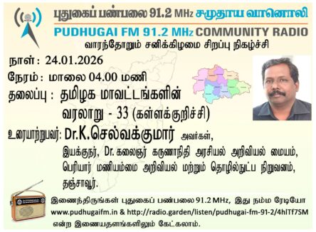 தஞ்சாவூர், பெரியார் மணியம்மை அறிவியல் மற்றும் தொழில்நுட்ப நிறுவனம், டாக்டர் கலைஞர் கருணாநிதி அரசியல் அறிவியல் மையம், இயக்குநர் Dr.K.செல்வக்குமார் அவர்கள் “கள்ளக்குறிச்சி மாவட்டம்”என்ற தலைப்பில் வழங்கிய உரை.
