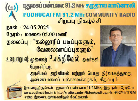 சிதம்பரம், அண்ணாமலைப் பல்கலைக்கழகம், அரசியல் அறிவியல் மற்றும் பொது நிர்வாகத்துறை, பேராசிரியர், முனைவர். P. சக்திவேல் அவர்கள் “கல்லூரிப் படிப்புகளும், வேலைவாய்ப்புகளும்” என்ற தலைப்பில் வழங்கிய உரையாடல்.