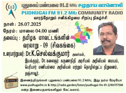 தஞ்சாவூர், பெரியார் மணியம்மை அறிவியல் மற்றும் தொழில்நுட்ப நிறுவனம், டாக்டர் கலைஞர் கருணாநிதி அரசியல் அறிவியல் மையம், இயக்குநர் Dr.K.செல்வக்குமார் அவர்கள் “தமிழக மாவட்டங்களின் வரலாறு” (சிவகங்கை) என்ற தலைப்பில் வழங்கிய உரை.