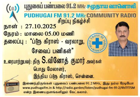 சென்னை, இந்திய ப்ளூ கிராஸ், பொது மேலாளர், திரு S.வினோத் குமார் அவர்கள். “ப்ளூ கிராஸ்- வரலாறு, சேவைப் பணிகள்” என்ற தலைப்பில் வழங்கிய உரையாடல்.